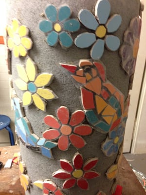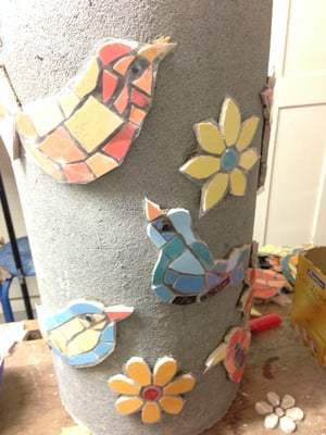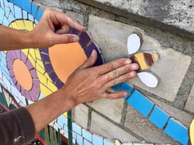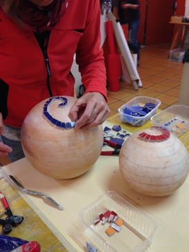Die einzelnen Mosaikteile werden direkt mit Flexmörtel oder Polymerkleber auf das biegefeste und vorgrundierte Trägerobjekt montiert.