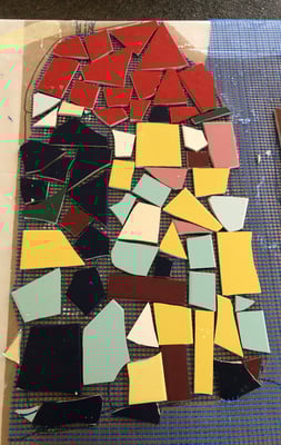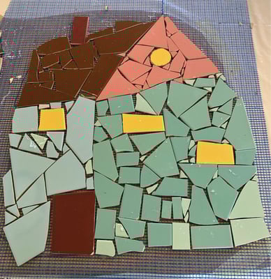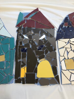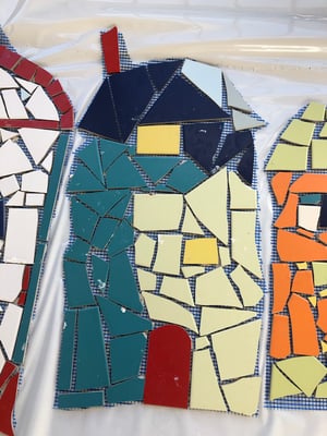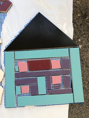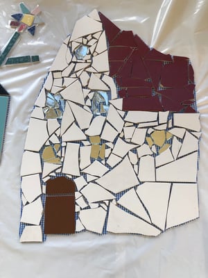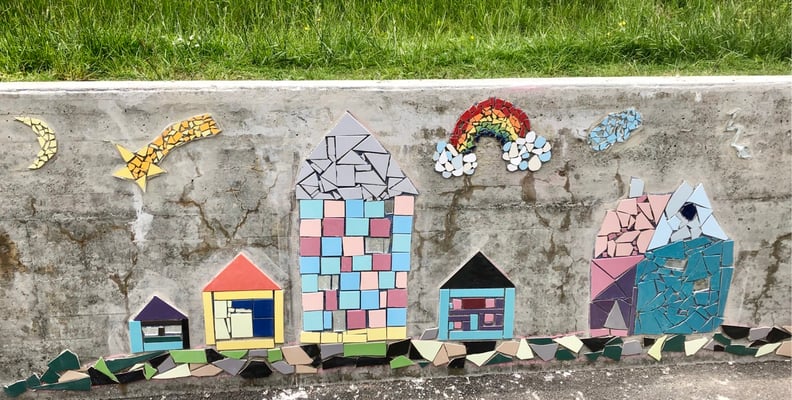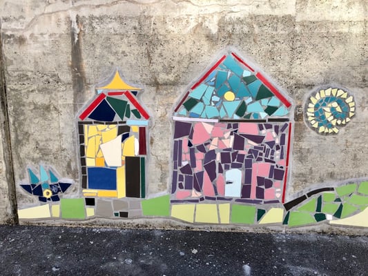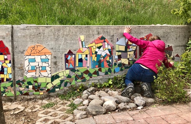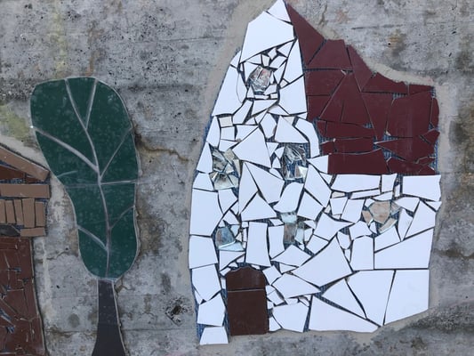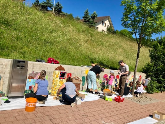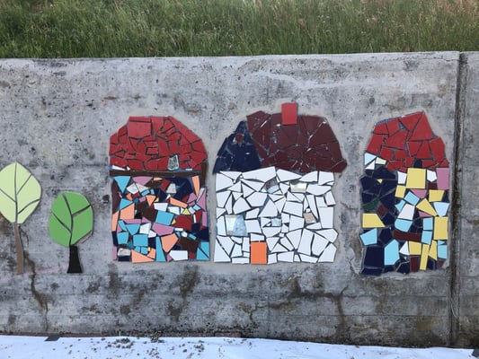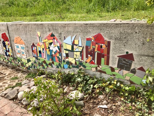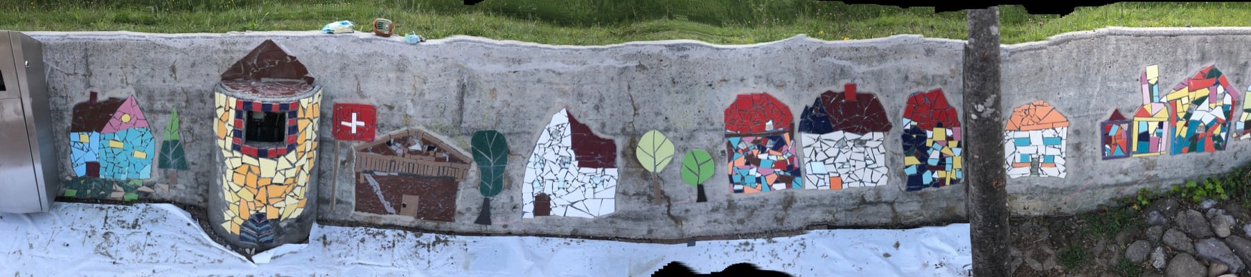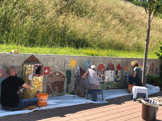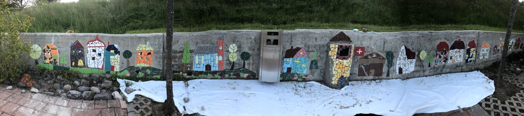 Mosaikaussengestaltung Böschungsmauer und Brunnen